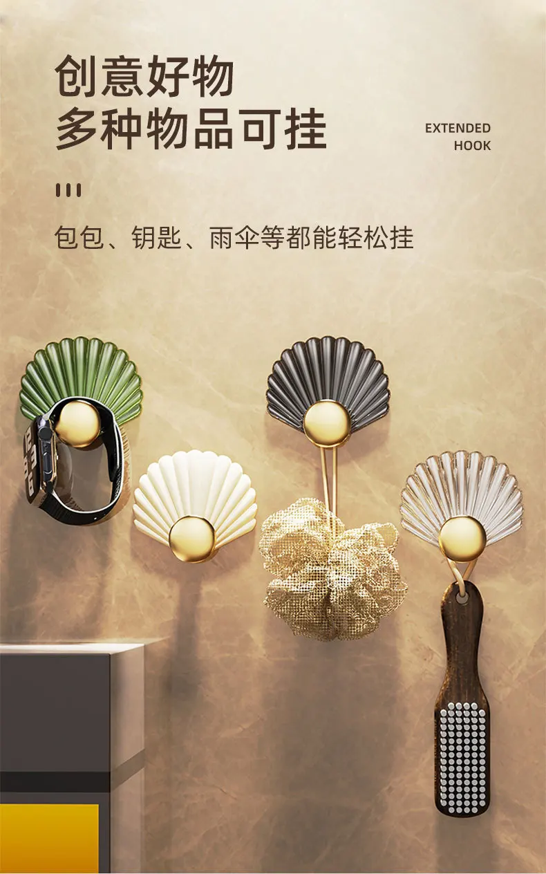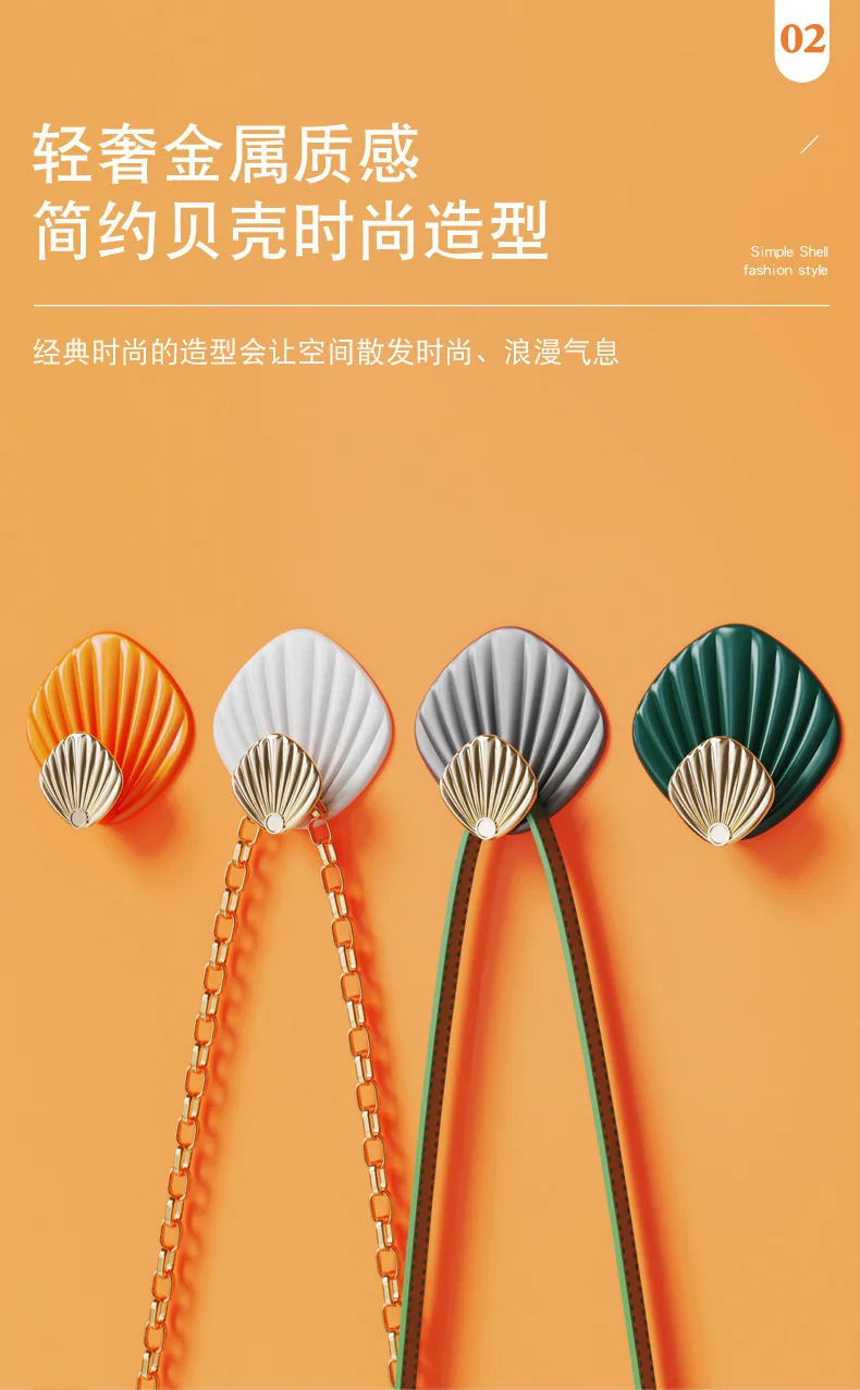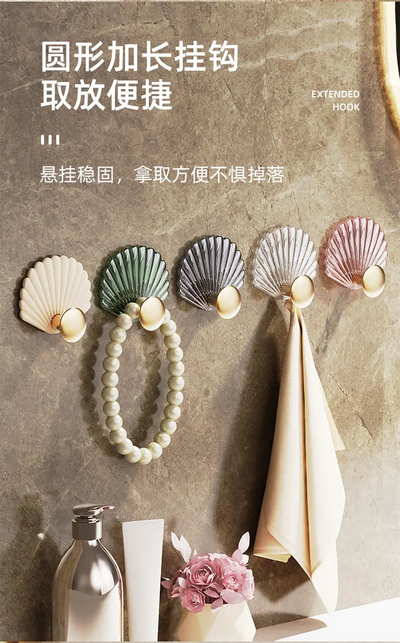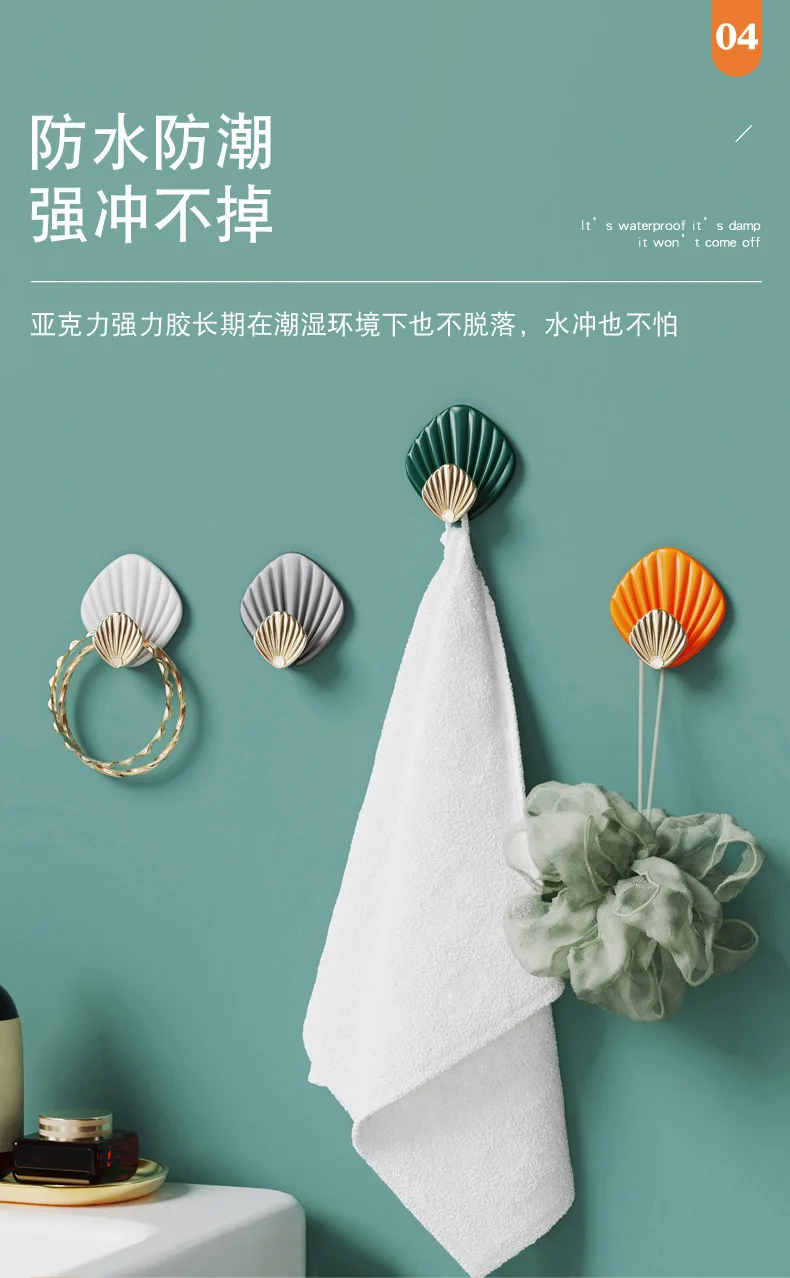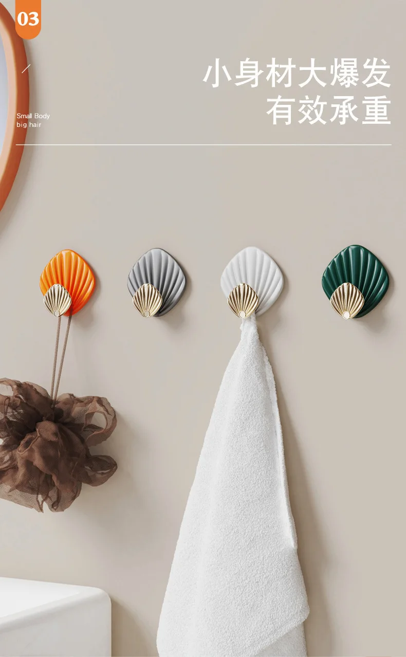 4PCS Set Wall Mounted shell Decorative Hanger Hooks Waterproof Shower Room Sticky Hooks for Kitchen and Bathroom Towel