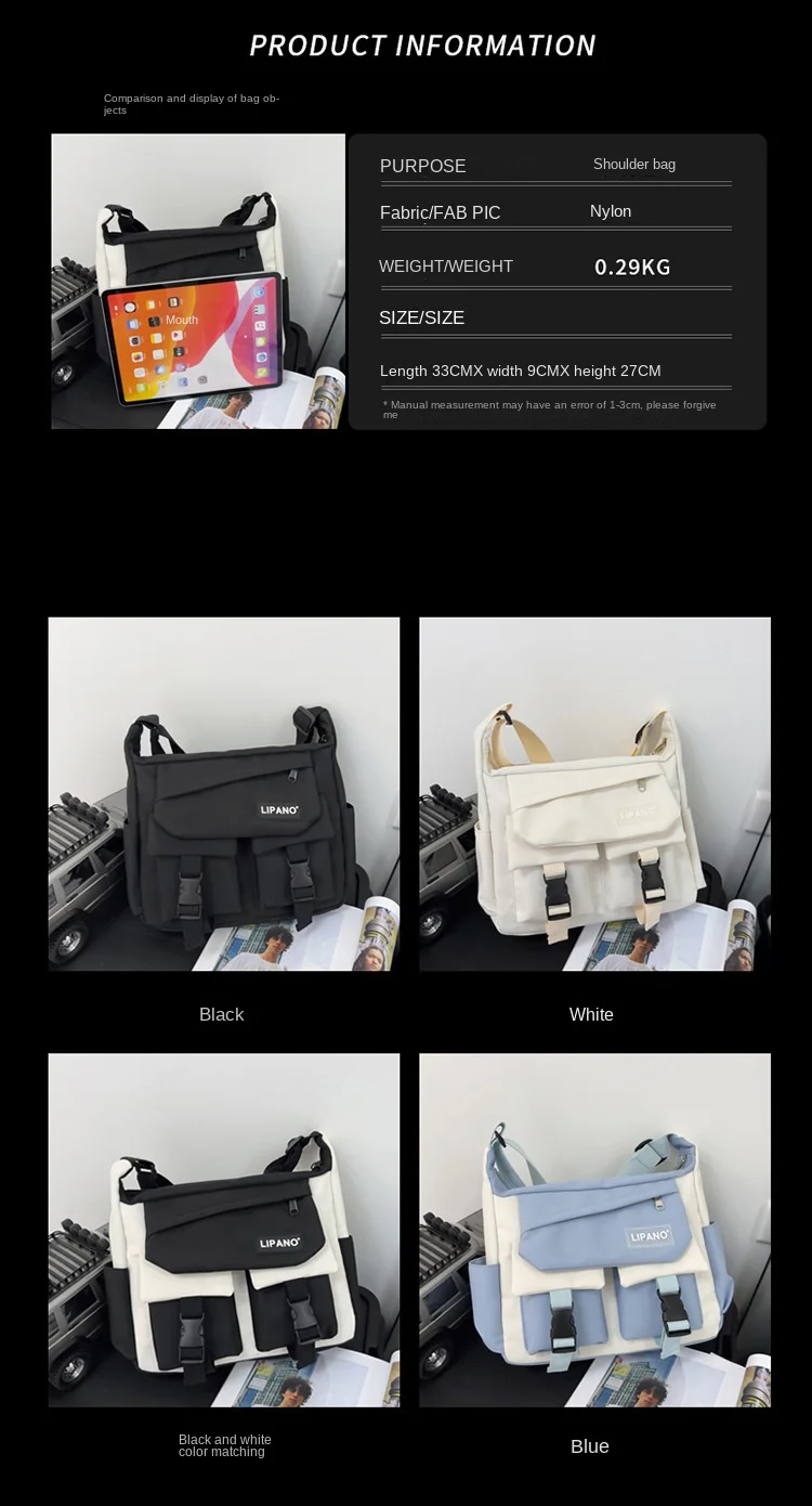 Collage Student School Bags For Women and Men Multipockets Nylon Crossbody Bags Women New Summer Messenger Bag Book Bag Bolso
